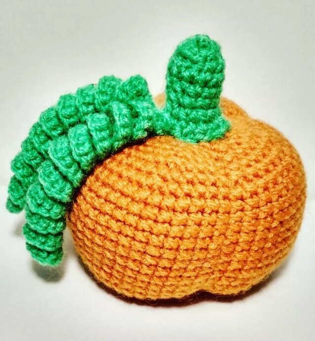 С этой тыквой у меня связаны самые теплые воспоминания. Она является мои первым творением, именно она вдохновила меня на "вязальные подвиги"))). Магия рождения игрушки захватила целиком и полностью, чему я несказанно рада!!! УСЛОВНЫЕ ОБОЗНАЧЕНИЯ: КА - кольцо амигуруми ВП - воздушная петля СС - соединительный столбик СБН - столбик без накида ПР - прибавка УБ - убавка МАТЕРИАЛЫ: пряжа "Детская новинка", крючок №2, швейная нитка оранжевого цвета, холлофайбер ТЫКВА: оранжевая пряжа 1: 8 СБН в КА 2: 8 ПР (16) 3: (1 СБН, ПР)*8 (24) 4: (2 СБН, ПР)*8 (32) 5: (3 СБН, ПР)*8 (40) 6: (4 СБН, ПР)*8 (48) 7: 48 СБН 8: (5 СБН, ПР)*8 (56) 9-20: 56 СБН -12 рядов 21: (5 СБН, УБ)*8 (48) 22: 48 СБН 23: (4 СБН, УБ)*8 (40) - начинаем набивать тыкву 24: (3 СБН, УБ)*8 (32) 25: (2 СБН, УБ)*8 (24) - добавить наполнитель 26: (1 СБН, УБ)*8 (16) 27: 8 УБ Закрываем отверстие, иголку продеваем вниз, стягиваем и прячем нитку. Получаются углубления с обоих сторон. БОРТИКИ: продеваем обычную швейную нитку оранжевого цв