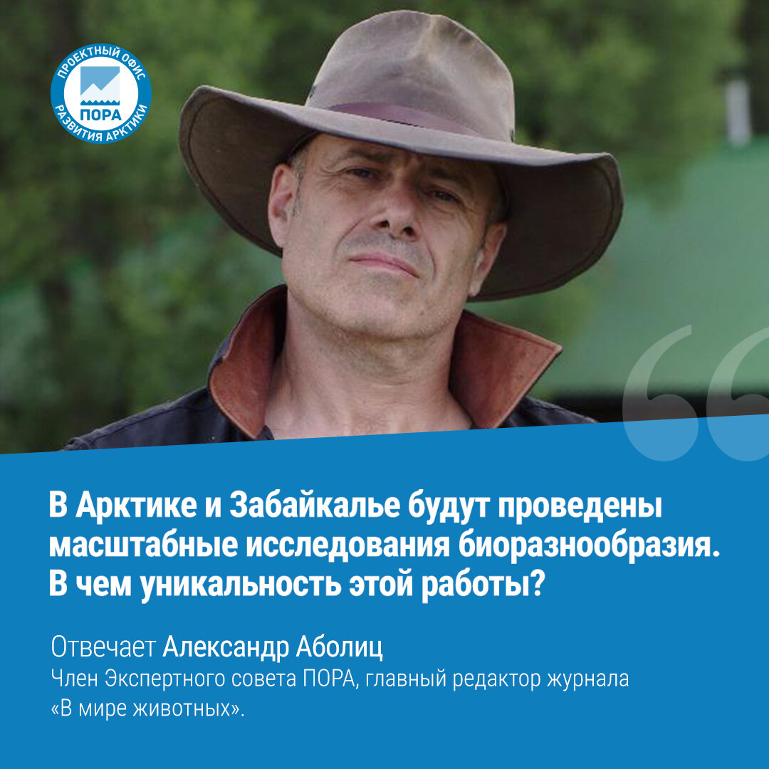 В Арктике и Забайкалье впервые с 1990-х годов будут проведены масштабные исследования биоразнообразия. Они помогут понять, как деятельность человека влияет на северные экосистемы. Мы попросили прокомментировать предстоящие исследования Александра Аболица, члена Экспертного совета ПОРА, главного редактора журнала «В мире животных». «Когда-то нам приходилось арендовать вертолеты и каждый раз лично отслеживать состояние фауны. Телеметрия, телекоммуникация и дистанционные методы, возможность вести непрерывные наблюдения — именно это стало принципиальным достижением последних лет в наблюдении за биосферой. Благодаря развитию современных технологий можно провести беспрерывный мониторинг среды. Ученые будут обследовать не только животный мир, но и исследовать состояние почвы, режим мерзлоты. Благодаря этому комплексному исследованию, оснащенному по последнему слову техники, можно надеяться на то, что ученые сибирского отделения поставят это исследование на динамическую основу — именно изменен