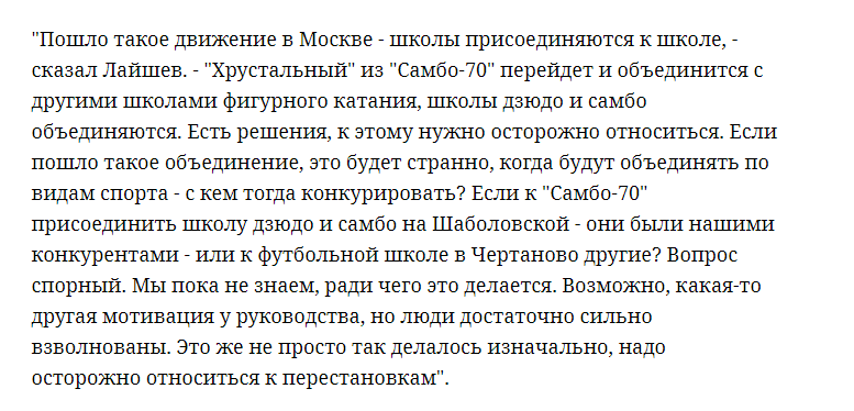 Возможно, вы уже слышали, что сейчас в Москве проходит реорганизация фигурного катания. Частично об этом рассказал президент "Самбо-70" Ренат Лайшев месяц назад: Вокруг этой информации ходило много разных слухов. И в основном люди относятся к происходящим изменением как минимум настороженно, а некоторые с долей пессимизма. Что это все означает и к чему в итоге приведет, можно только догадываться. Очевидно, что многое будет зависеть от того, какие люди окажутся там наверху, какие цели они будут преследовать и насколько будут заинтересованы в развитии фигурного катания. Подозрительнее на этом фоне выглядит избрание нового президента Федерация фигурного катания города Москвы. На прошлой неделе, 23 апреля, в Москве состоялись выборы и новым президентом стал Абдурахманов Антон Викторович, сменив Ирину Рабер, возглавлявшую федерацию с 2005 года. Абдурахманов набрал 154 голоса, Слуцкая - 55. Рабер стала почетным президентом организации. При этом Абдурахманов помимо предпринимательской деятель