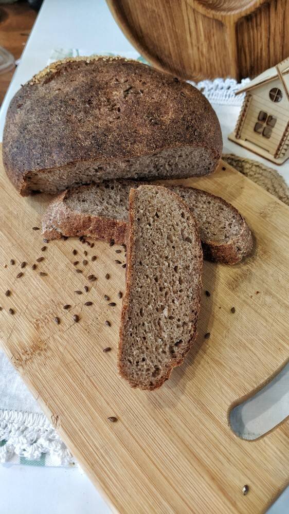 #академия Великолепный хлебушек на ржаной закваске на цельнозерновой муке. Вкусный, полезный, воздушный. Просто наслаждение 😍 Ингредиенты: Для закваски, зрелой ржаной закваски, ржаной обдирной муки, чистой воды комнатной температуры, Для теста, вся закваска, воды (у меня сыворотка), псиллиума, пшеничной цельнозерновой муки, Соль , сливочного или растительного масла, травы, семечки, кунжут и по желанию Способ приготовления: Готовим закваску. Смешиваем все ингредиенты в удобной посуде, накрываем пищевой плёнкой и убираем в теплое место без сквозняков на 14-16 часов. Просеиваем муку, добавляем псиллиум, соль, травы, семечки. Перемешиваем. Вода или сыворотка должны быть тёплыми. Добавляем воду, масло, закваску. Вымешиваем тесто. Можно руками или тестомесом. Минут 10. Формируем шар и убираем на 50 минут в удобной посуде в теплое место без сквозняков. Достаем тесто, выкладываем на смазанную маслом поверхность. Тянем с каждой из 4 сторон к центру по очереди и опять формируем шар. Убираем ещё