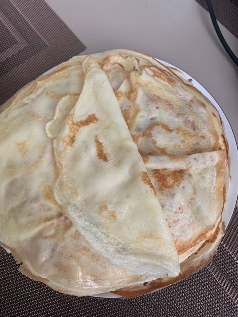 Эти блины получаются у всех, даже кто не дружит с тонкими блинами. Главное, чтобы сковорода была для вас удобна, у меня сковородки на которых я пеку только блины и оладьи и больше ни для чего не использую. Ну и антипригарная, но и на чугунной получается тоже. Ингредиенты: муки, молока, яиц, сахара, соли, масло растительное Способ приготовления: Яйца смешать с сахаром и солью. Если будете фаршировать блины с не сладкой начинкой, ну или предпочитаете кушать блины со сладкими наполнителями, то можете уменьшить сахар. Моей семье нравится именно в таких пропорциях. Вливать постепенно теплое молоко, хорошо перемешать. Просеянную муку добавлять постепенно, хорошо перемешивая миксером насадкой венчик. Комочков быть не должно. Добавить растительное масло и перемешать. Прогреваем сковородку, у меня антипригарная, но для первого блина смазываю кисточкой маслом растительным дно сковородки, жарим с двух сторон, до золотистого цвета. Блины я не смазываю ничем, так как растительного масла достаточно