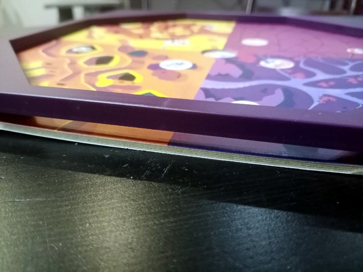 Доброго времени суток, дамы и господа! Новая неделя, новая настольная игра. «Сонору» прислали ребята из «Hobby World», за что им большое спасибо — я сразу же ухватился за возможность потестить настолку, ибо в ней есть одна очень интересная и знакомая буквально до боли механика. Полагаю, что из заголовка вы поняли, о чём речь. Итак, поехали! Увы, в этот раз мне не повезло с коробасом С его содержимым, если быть точнее. Смотрите — поле, в рамках коего предстоит щёлкать фишки, представлено пластиковой рамой и встроенным в неё картонным дном. Я не эксперт по созданию таких штук в заводских масштабах, но выглядит конструкция слегка странно — в одном месте одна буквально прилеплена на скотч. Сначала думал, что это для того, чтобы заменять картонное дно на иной ландшафт, но нет — в коробке лишь одна картонная подложка. В общем, как вы видите на фотографии, одна сторона отошла, в результате чего поле стало слегка кривым и сами фишки при ударе (в редких случаях) вылетали в эту самую дыру. Это д