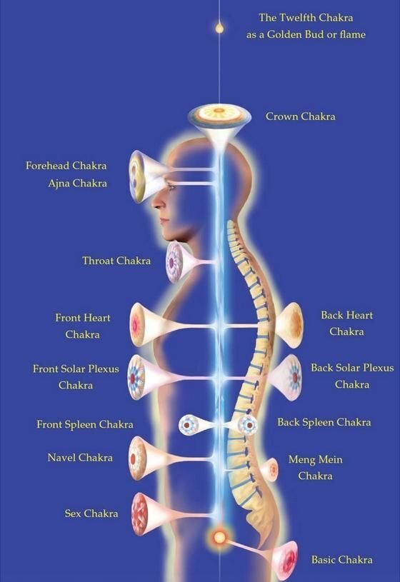 В переводе с санскрита слово «чакра» означает «колесо». Наиболее известными и играющими самую важную роль в существовании человека являются семь основных чакр, расположенных вдоль средней линии тела, параллельно позвоночном столбу. Чакры отвечают за физическое, умственное и духовное здоровье человека.... Эти семь чакр расположены в эфирном теле. Из центра каждой чакры исходит стебель, направленный к позвоночнику и соединяющийся с ним. Таким образом, он подключает чакры к самому важному энергетическому каналу — Сушумне, который поднимается вдоль позвоночника к голове. Чакры находятся в состоянии постоянного вращения и вибрации. Именно их вращение, в зависимости от направления, притягивает и отталкивает энергию. Чакры вращаются по часовой стрелке, или против. Поворот вправо имеет значение ян, мужского. Он представляет силу воли и деятельность, а его менее позитивные значения — агрессивность и жажда власти. Поворот влево имеет значение инь, женского, и символизирует принятие и покорнос