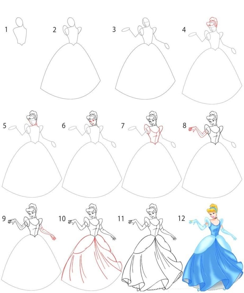 Как пошагово нарисовать сказочное платье или костюм