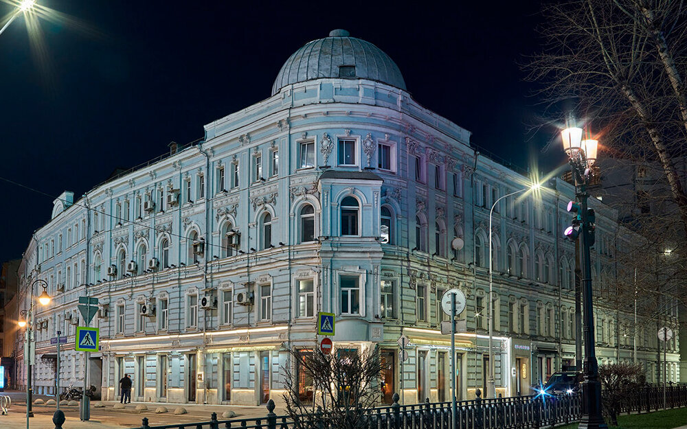 По другую сторону бульвара, на углу Тверского бульвара и Малой Бронной улицы мы видим дом 7/2, четырехэтажное здание, которое начало строиться еще во второй половине XVIII века. Им тогда владел полковник Грушевский, будущий сенатор и участник войны с Турцией. С 1771 г. домом владела семья князей Голицыных. Князь приложил много усилий для установки на Тверском бульваре первых фонарей, в результате бульвар стал самым освещенным местом Москвы. В 1812 г. усадьба сильно пострадала, но была восстановлена. В 1882 г. флигели были соединены между собой надстройками. Через 11 лет был построен еще один этаж – здание стало четырехэтажным. По фамилии очередного владельца дом прозвали «Романовкой». Здесь были дешевые меблированные комнаты, в которых обитали студенты консерватории, московского училища живописи, ваяния и зодчества и прочая публика. Со стороны М.Бронной улицы располагалось Общество помощи студентам и дешевая столовая. В конце 1890-х гг. в доме открылся музыкальный салон и была сделана пристройка (по М.Бронной) с залом для концертов и спектаклей. Тут репетировали артисты частной оперы С.Мамонтова. Частыми гостями салона были композитор Римский-Корсаков, художники М.Врубель и К.Коровин, певец Ф.Шаляпин и другие деятели искусства. После создания МХТ здесь шли репетиции спектаклей театра, пока строилось здание в Камергерском переулке. В советское время в доме 7/2 располагались клубы московских извозчиков и торгово-промышленных служащих, проходили спектакли Государственного еврейского театра и Московского театра сатиры. С 1962 г. здесь поселился Московский драматический театра на Малой Бронной. Одним из студентов московской консерватории, жившим в «Романовке» в 1890-х гг., был будущий солист Большого театра, выдающийся тенор В.Л.Собинов (1872-1934).