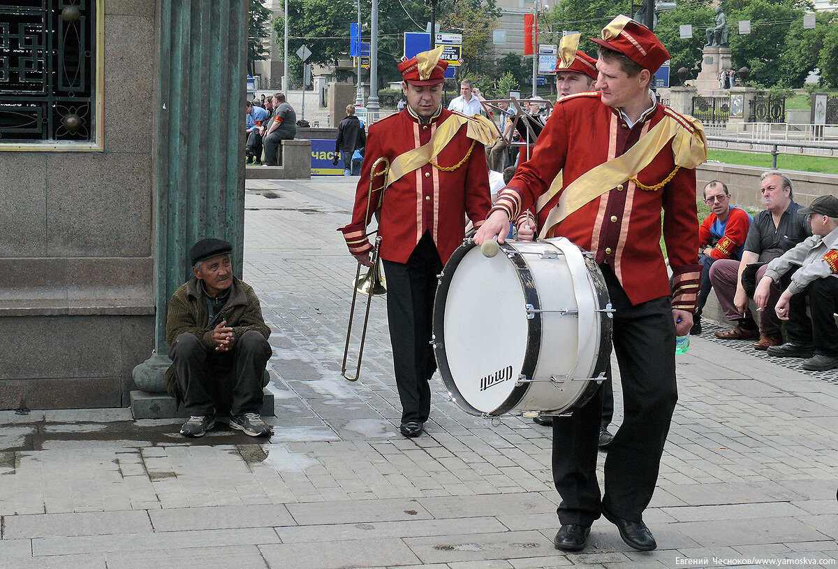 Ряженые цари, вожди и генералиссимусы предлагают туристам сделать фото на память.