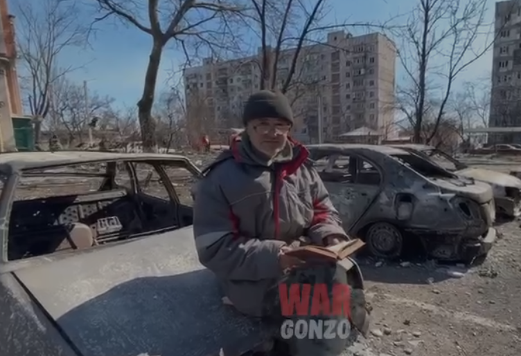 Хочу поделиться этой публикацией Дмитрия Селезнева. В телеграм-канале автора (по ссылке внизу статьи) можно посмотреть видеосюжет, снятый авторами при встрече Человека с Книгой. Человека с Книгой мы, команда @wargonzo, повстречали в одном из дворов Мариуполя. Зрелище, конечно, апокалиптическое. Во дворе ни одного дома целого. Ни одного. Особенно пострадала стоящая торцом к дороге девятиэтажка. Несколько подъездов смяты огневым ударом, один осыпался до второго этажа, другой – до четвёртого. Полдома выгорело, девятиэтажка стояла вся в чёрных, жирных подтёках от пожаров. А напротив этого разрушенного дома как ни в чём не бывало на бампере одной из сгоревших машин сидел человек в шапочке и очочках и читал книгу. Ветер трепал края прижатых пальцами страниц. Мы остановились. Удивительно. Он не позировал, нет. Он никак не мог знать, что здесь появятся журналисты. Он читал книгу не смотря ни на что. Ни на разрушенные дома, ни на размётанные осколками детские площадки во дворе, ни на скелеты ма