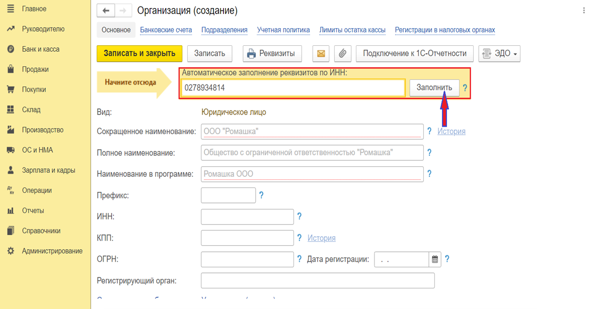 Как заполнить карточку контрагента по ИНН и проверить организацию.