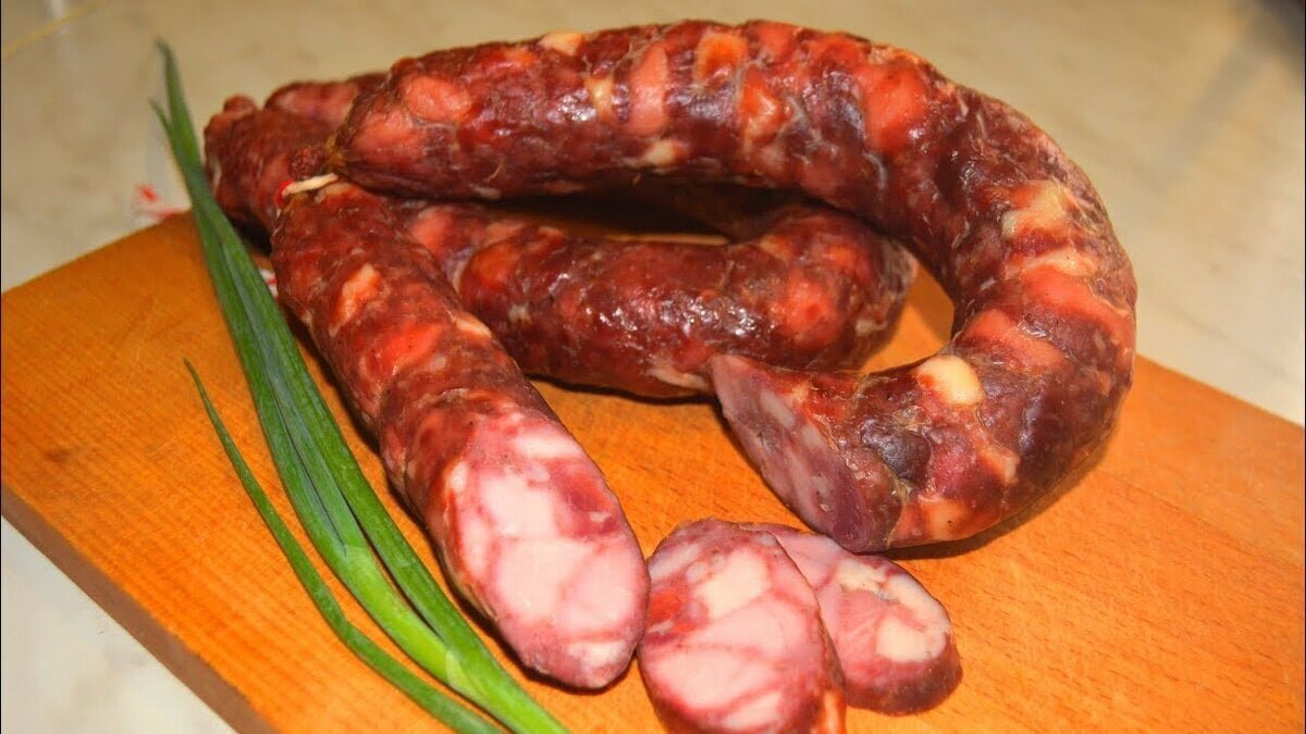 Краковская колбаса имеет свой неповторимый вкус, который ни с чем не спутаешь. Предлагаем вам сделать ее в домашних условиях. Для приготовления вам потребуются такие ингредиенты: — говядина, 500 г; — свинина, 1.5 кг; — сало или грудинка, 500 г; — соль, 40 г + нитратная соль (6.25 %) или (45 г нитритная соль 0.5 – 0.6 %); — кардамон, душистый перец, по 0.5 ч.л; — черный молотый перец, 1 ч.л; — вода ледяная, 250 мл; — сухое молоко, 30 г; — сахар, 1 ч.л; — чеснок сухой, 1 ч.л; — натуральная свиная оболочка, 3.5 – 4 м. Приготовление: Мясо промываем и измельчаем на мясорубке с крупной решеткой 2 раза. Если предпочитаете в колбасе кусочки покрупнее, тогда достаточно и 1 раза. Смешиваем все специи и добавляем сухое молоко, перемешиваем смесь. Молоко помогает избежать бульонного отека. Выкладываем специи в фарш, наливаем ледяную воду и хорошо все вымешиваем. Накрываем крышкой и ставим в холодильник минимум на ночь, но лучше на 18 часов. Фарш выкладываем в колбу от пресса, насадку протрите