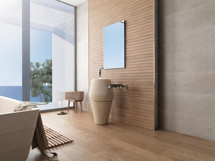 - разница фактур, которой можно добиться, используя разное сочетание текстур, например, в коллекции от фабрики Porcelanosa Image;