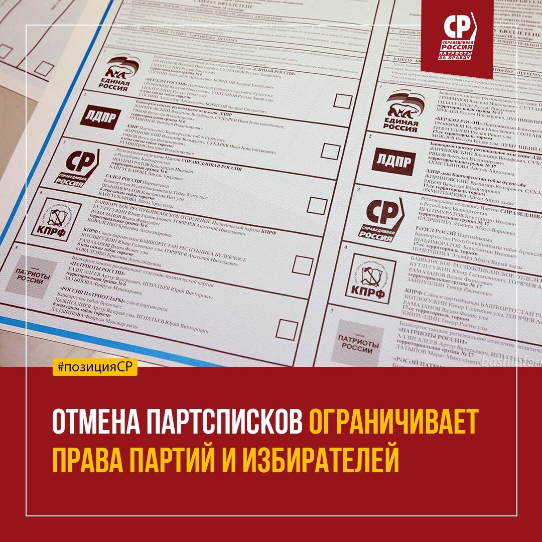 СПРАВЕДЛИВАЯ РОССИЯ - ЗА ПРАВДУ считает, что отмена схемы выборов по партийным спискам в регионах снижает возможности как партий, так и избирателей влиять на процесс выборов и формировать эффективные парламенты. При мажоритарной системе во главу угла ставятся административный ресурс и финансовые возможности кандидатов. В итоге формируются однопартийные Заксобрания, работающие в отрыве от избирателей. Хотя связь органов представительной власти с гражданами крайне важна, особенно в текущих непростых условиях.