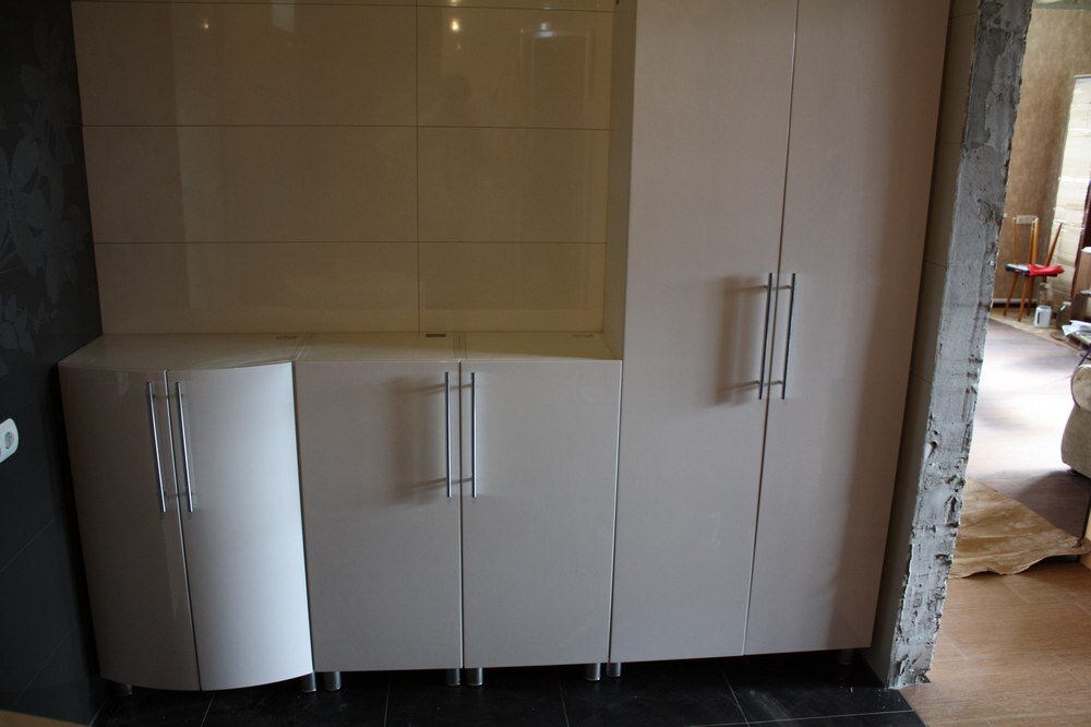 Комплект мебели в предбанник в частном доме: тумба под столешницу с умывальником, тумба для полотенец, шкаф для халатов. Фасады МДФ эмалированные. Корпуса ЛДСП Egger влагостойкая белая, ручки рэйлинги и ножки хромированные. Корпус ЛДСП Egger W980 ST2 Белый платиновый. Фасады МДФ, покрытие - глянцевая эмаль, цвет RAL-9003. Стиль: Современный Минимализм, Модерн . http://vivomebel.com/galviewer.php?id=20