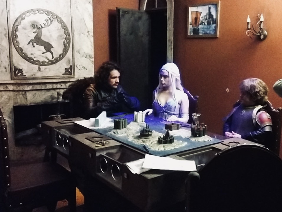 Погода в Петербурге - как будто армия Короля ночи движется к городу! Снег и холод после, казалось бы, весенней погоды. Пора бы взяться за меч и победить армию белых ходоков, а заодно стать королем Винтерфела! Всё это вы сможете осуществить в нашем квесте по супер популярному сериалу «Игра Престолов». Для квеста были созданы специальные локации и декорации, напоминающие дома и предметы из сериала, в том числе тот самый Железный трон! Мы изготовили металлический каркас, который послужил основой для трона и приварили к нему больше сотни мечей, чтобы наш трон был максимально похож на оригинал 😎 А ещё, Вы сможете сесть за стол переговоров вместе с Дейнерис, Джоном Сноу и Тирионом Ланистером, испытать свои способности в тренировочной комнате Чёрного замка или стать безликим в Храме Браавоса! Конечно, мы как истинные фанаты сериала, сделали ещё и карту Вестероса, повторяющую ту самую карту из заставки к сериалу! Уверены, вы уже слышите в голове эту мелодию 😉 На разработку квеста у