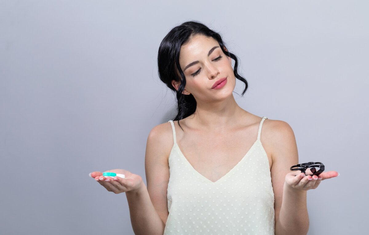 Рассмотрим плюсы и минусы использования очков и контактных линз. Среди достоинств очков – простота применения, невысокая стоимость, безопасность, отсутствие осложнений. Недостатков значительно больше. Среди них: