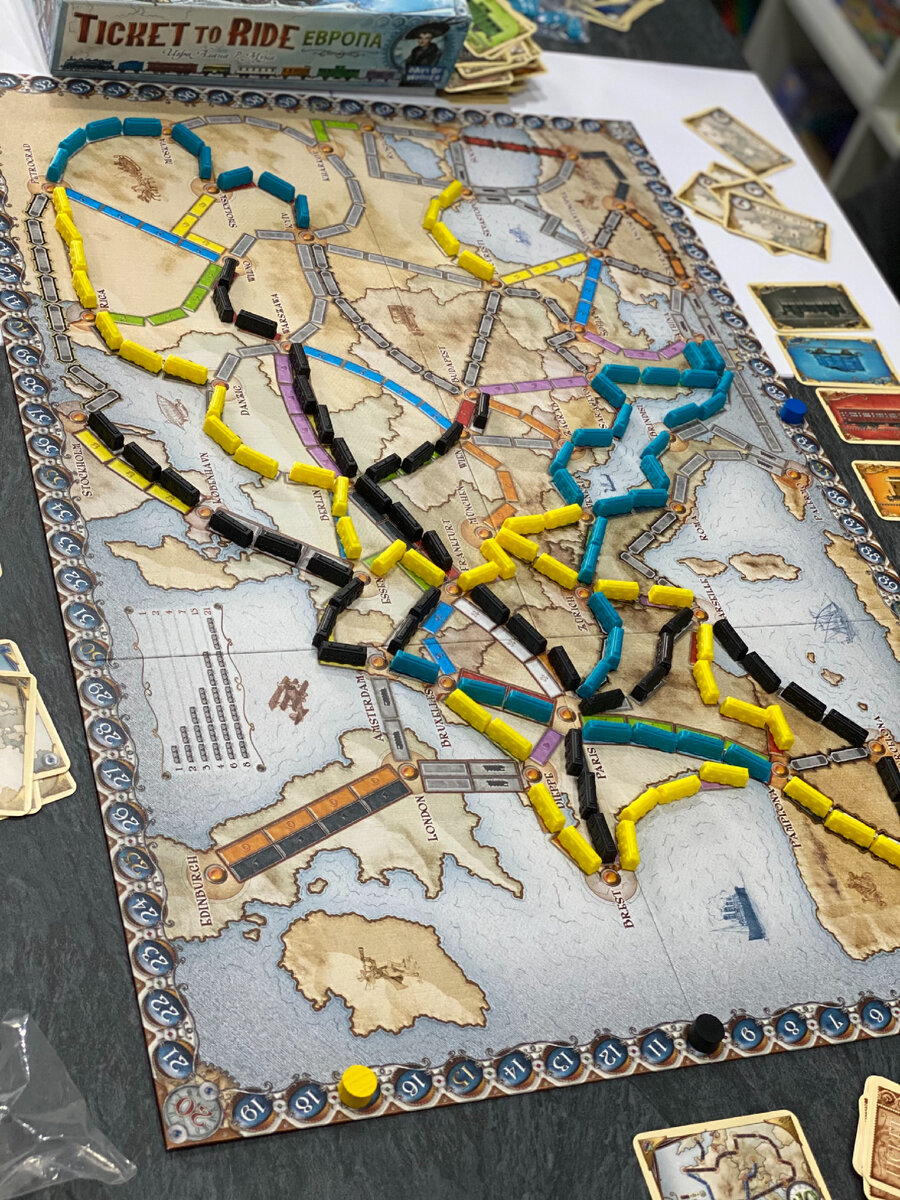 Одна из наших любимых игр уже на протяжении нескольких лет - «Ticket to ride”, он же «Билет на поезд»!) ⠀ Наше знакомство с этой игрой состоялось чуть больше 4 лет назад, и первой версией игры у нас была «Билет на поезд.Европа» ⠀ Появилась она у нас под Новый год, а сыграли мы с мужем в неё как раз в новогоднюю ночь, да так она нам понравилась, что играли до утра, а а потом ещё и несколько дней подряд в новогодние каникулы! ⠀ Суть игры- У игроков есть карточки с маршрутами и набор вагончиков одного цвета, они должны, собирая сеты из карт поездов, проложить на карте заданный маршрут, при этом заработать как можно больше очков. Игра проста в освоении, но при этом очень увлекательна! ⠀ Уже к концу года, в котором игра нас покорила, у нас появились ещё три коробочки с Тикетами) Это были- Джуниор, Северные страны и Америка) Если сравнивать, то Европа и Северные страны конфликтнее, чем Америка. И в Северные страны могут играть только 2-3 человека, в другие версии рассчитаны на 2-5 игрок