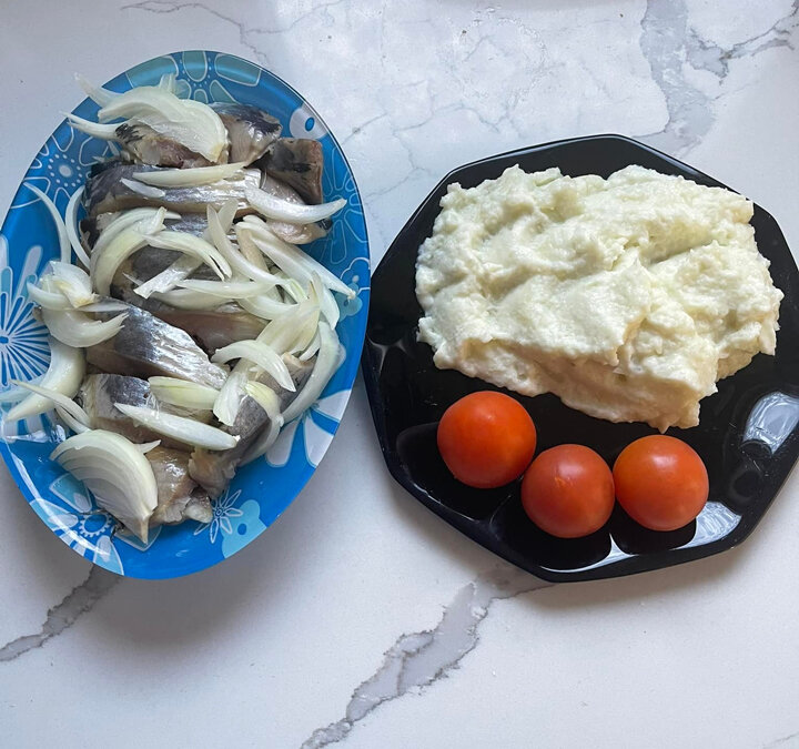 А в качестве «белковой составляющей! – селёдка с лучком.