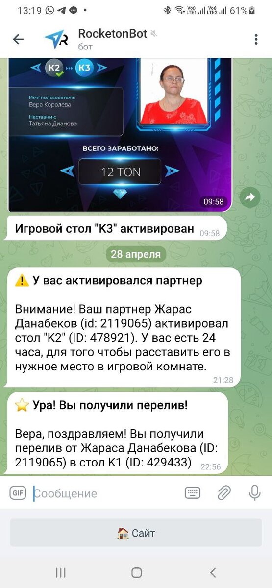 Вот прошло ещё несколько дней с того момента как участники проекта #Rocketon стали получать результаты. И тут не только денежные результаты, но и переливы из команды, которые помогают закрывать ячейки в игровых столах, а значит быстрее выходить на новые столы и получать выплаты. Прошлую статью "Первые результаты участников Рокетон и маркетинг проекта" можете прочитать по этой ссылке. Это мой, пока ещё скромный результат. Но уверена, что когда у меня будет в команде несколько личных активных партнеров, заработок увеличится и будет только расти. Ну а вот некоторые результаты участников нашей дружной команды #MegaTon , в том числе и моего куратора. Обязательно пролистните карусельку картинок, чтобы увидеть результаты :). Хочется отметить, что кроме возможности заработка, есть ещё обучение, инструменты автоматизации, например, конструктор лендингов, конструктор визиток. Обновления на платформе проекта #Rocketon А на днях появилось ещё несколько приятных "плюшек". Например, выполняя
