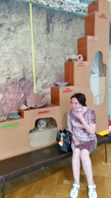 Симферопольский музей. От древних к грекам. А мы продолжаем исследовать эпохи. Со дна древнего моря мы, вместе с первыми животными, переселились на сушу. Вдоволь побродили по ней, любуясь разнообразными камнями под ногами (от окаменелостей до поделочных и полудрагоценных). Так мы добрались и до первых следов человека. Люди без дела не сидели, во всю обрабатывали камни, кости и глину, выдавая на гора материал для будущего краеведческого музея. Люди, пока, были "на лицо ужасные", но в изобретательности и мастерстве им было, уже, не отказать. Посмотреть есть на что. Археология, оказывается, весёлая штука! "Бабуля! Закурить есть?!" Во! Эти Чёрное-то море выкопали? Как "выяснили украинские историки"... В наличии вкуса и стиля им не откажешь. Старательные. Картина и телевизор. Телевизор справа. С дизайном у них всё в порядке :). Вполне себе украшение современного интерьера. Люди поняли, что можно делать посуду красивой. Но получалось не всегда. А вот кому скребло? Или пилу... Обширный ассо