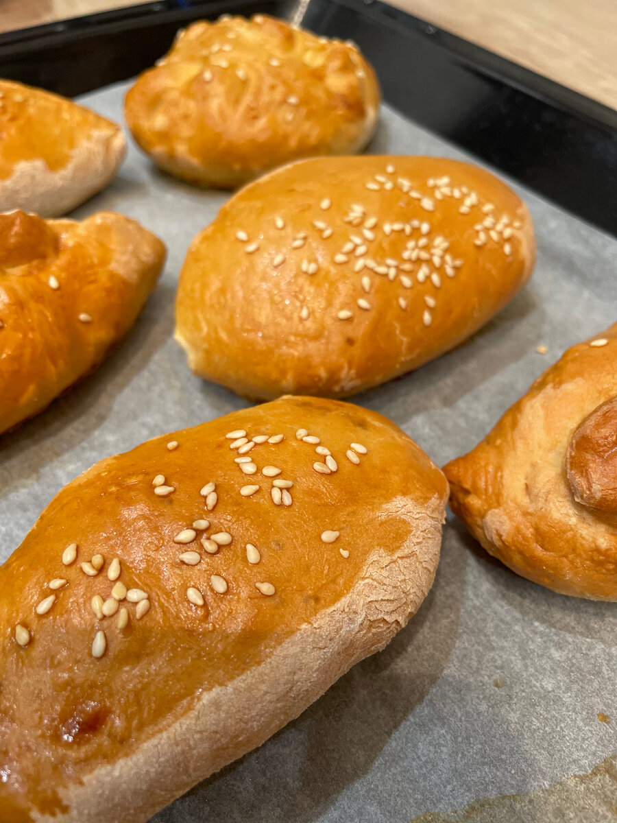Такие *Пирожки с капустой* вы еще не пробовали 🔥🔥🔥🔥🔥🔥 Ингредиенты: дрожжевое тесто: 3 ст. муки в/с (500 гр.) 1 крупное яйцо 1/ ст. воды 30 гр. свежих дрожжей 1 ч.л. сахара 1 ч.л. соли 1 ст.л. подсолнечного масла начинка: 800 гр. белокочанной капусты 1 крупная луковица 1 крупная морковь соль по вкусу черный молотый перец по вкусу растительное масло украшение: 1 яйцо кунжут ______________ В теплой воде растворяем свежие прессованные дрожжи. Добавляем 1 ст.л. муки, 1 ст л масла и 1 ч.л. сахара, перемешиваем и ставим сосуд с опарой в теплое место на 20 минут. Когда опара покроется многочисленными пузырьками и заметно увеличится в объеме, добавляем два с половиной стакана муки. Добавляем 1 яйцо комнатной температуры. Кладем 1 чайную ложку соли. При данном количестве соли тесто на вкус получается слегка солоноватым. По желанию корректируем количество соли и сахара в тесте. Замешиваем дрожжевое тесто. Посыпаем мукой стол и выкладываем тесто. Тесто хорошо месим руками. Если необходим