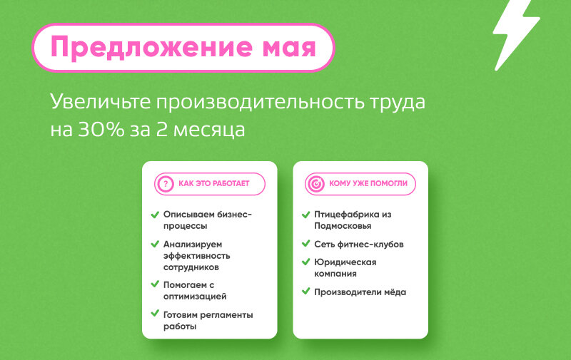 Предложение мая: увеличьте производительность труда на 30% за 2 месяца
