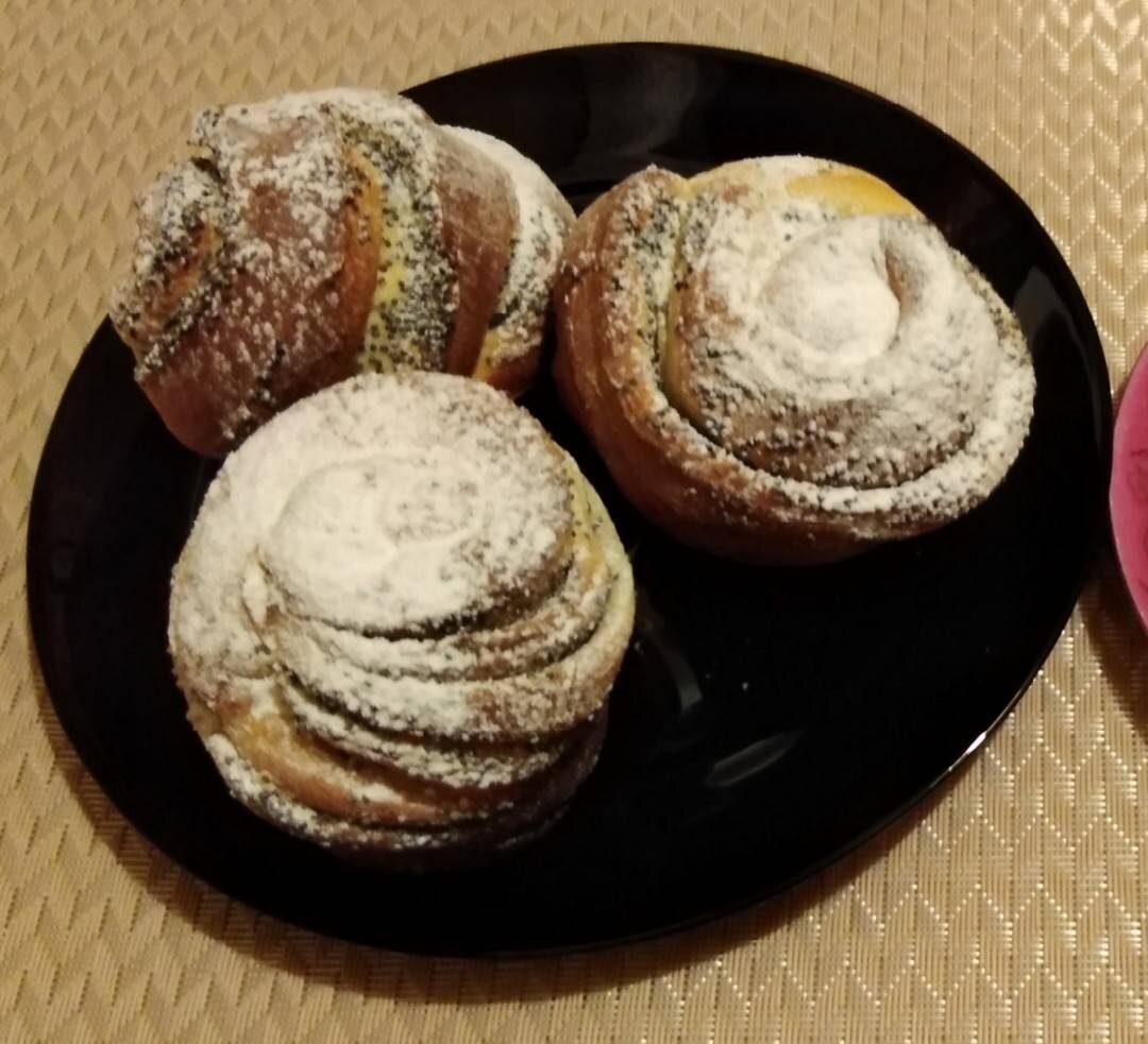 Булочки по рецепту кулича Краффин. Единственное что у меня они с маком, но мак я не проваривала, что явилось большой ошибкой, так как сухой мак будет отсыпаться из булочек. Мак нужно обязательно проварить около 30 минут на среднем огне, снимая пену. Далее его желательно измельчить в блендере. Отдельно взбить яичный белок, добавить туда немного сахара и опять взбить. Потом в мак добавить взбитый белок, перемешать. Тогда это будет настоящая маковая начинка, а сухой мак используется только для посыпки. #выпечка #булочки #краффин #духовка #десерт #детям #кчаю #тесто Ингредиенты: теплого молока, яйца, гр сливочного масла или маргарина Пышка, гр сливочного масла для смазки, гр сахара, соли, гр или 2 ч. ложки с небольшой горкой сухих дрожжей, гр муки, изюм, цукаты, мак, растительное масло для смазки Способ приготовления: Подогреть молоко, я это сделала в микроволновке. Добавить дрожжи, яйца, сахар и соль. Перемешать. Добавить растопленное сливочное масло или маргарин Пышка. Добавить муку, зам