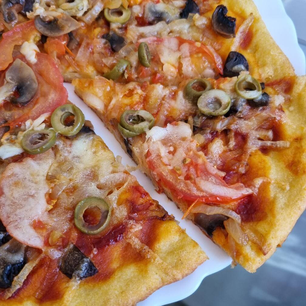 Творог это отличная замена дрожжевому тесту, вкусное сливочное, в меру жирное, для тех кто переживает за фигуру, но очень хочет пиццу , хотя это так вкусно что понравиться всем. #академия #пицца #творог #творожноетесто #пппицца #пп #безсахара #ужин #обед #завтрак Ингредиенты: Творог , Яйцо, Сода , Яблочный уксус , Растительное масло , Соль, Безглютеновая мука , Рисовая мука , Кукурузная мука , Начинка, Лук маленький, Грибы шампиньоны, Помидор, Оливки, Кетчуп , Сыр моцарелла Способ приготовления: В творог добавляем яйцо, соль, соду, уксус, масло и пробиваем все блендером до однородности. В массу добавляем муку постепенно посыпая и перемешивая. Вымешиваем тесто, оно будет не плотное, слегка липнет к рукам. Тесто убираем в пакет и даём отдохнуть пока готовим начинку. На сковородке обжариваем лук и грибы. Тесто на противне распределяем руками, смазываем кетчупом. Выкладываем грибы с луком, нарезанные помидоры и оливки. Отправляем в духовку на 15 минут при 180°. Достаём, просыпаемся сыром и