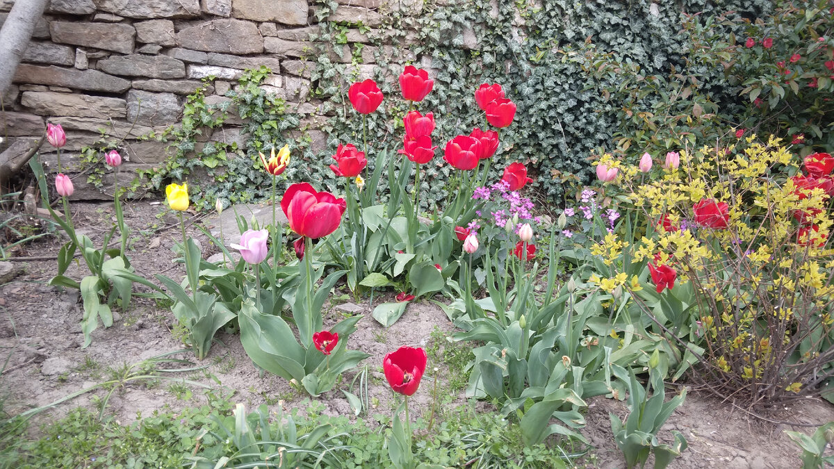 Вообще-то в южных условиях луковицы тюльпанов отлично размножаются и вызревают прямо в земле. Хоть и рекомендуется их выкапывать ежегодно, в сёлах этого никто не делает. Поэтому очень многие сельские дворы весной выглядят так: