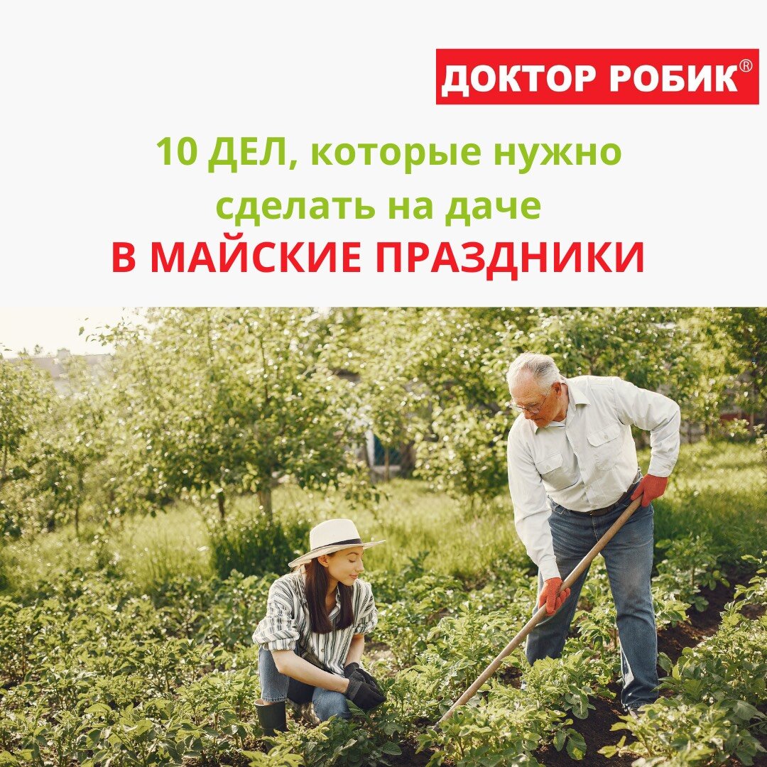 Майские на носу. Готовы потрудиться? Делимся с Вами списком дел, которые нужно успеть сделать на даче в майские праздники. Ведь планирование - залог успеха любого дела! 1. Приведите в порядок газон. Ухоженный газон — это то, что лучше всего радует глаз на даче. И даже, если на вашем участке нет грядок и клумб, ухаживать за газоном нужно обязательно. Поэтому чтобы старая трава не мешала расти молодой, нужно «причесать» газон граблями. 2. Обрежьте кустарники и деревья. Сначала удалите крупные ветки. Поврежденные, поломанные за зиму, сухие, ломкие или больные веточки нужно обрезать и сжечь. 3. Обработайте растения инсектицидами Эту работу нужно успеть сделать, как можно скорее - до появления первых листьев. Обработка растений необходима против вредителей и кладок их яиц, живущих в коре деревьев: гусениц, всех разновидностей тли, клещей, моли листоверток. 4. Снимите укрытие с теплолюбивых растений Обязательно снимите укрытия с роз, самшитов, рододендронов, чтобы они не сгнили под солнцем.