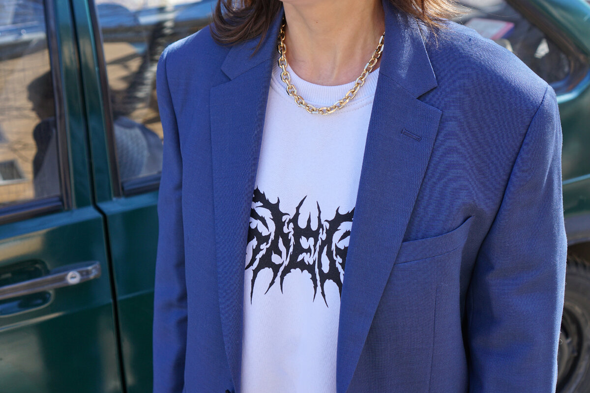 Благодаря прямому крою и модели оверсайз сидят свитшоты и лонгсливы свободно. Кажется, что за последние годы все уже привыкли к свободному крою. По крайней мере я чувствую себя несколько странно, если моя толстовка облегает фигуру. Ну и потом в свободной посадке много плюсов, один из которых — возможность надеть что-нибудь под свитшот.