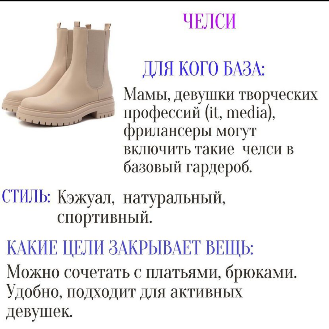 В этой статье для каждой пары обуви пояснение, для кого это база, к какому стилю относится и с чем сочетать. Идеально! Девушки, привет! Меня зовут Александра, я персональный стилист из Санкт- Петербурга. Это мой блог про стиль и моду, где я делюсь находками, подборками и даю рекомендации по составлению образов) Итак, начнем) Обожаю челси! Себе купила универсальные и мегаудобные в Эконике. Ботфорты подойдут для кэжуал образов, если они выполнены из замши и имеют невысокий устойчивый каблук. Конечно, для кэжуал стилистики такая обувь тоже подойдет. Не забываем про прием: летящее платье и грубые ботинки. Для гранж и драматического стилей выбираем ботинки в черном цвете. А какая у тебя базовая весенняя обувь? Напиши в комментариях. Ставьте лайк, если понравилась статья. Подписывайтесь на канал.