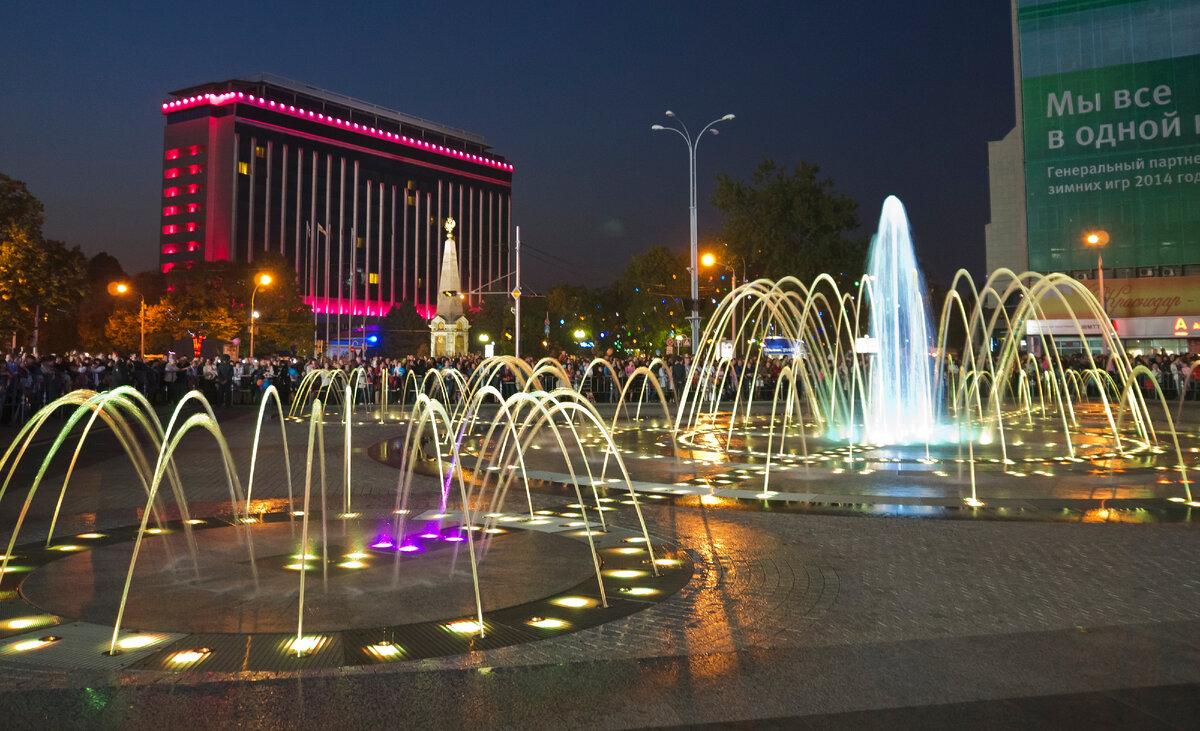 Фонтаны в Краснодаре стали возводить в конце 19 века. Сейчас их в городе около 50. Запуск фонтанов - всегда радость и праздник. Однако из-за пандемии любые мероприятия по этому поводу были отменены. Фонтаны запускали без каких-либо торжеств. Завтра, 29 апреля, впервые за два последних года года фонтаны в Краснодаре откроются в праздничной обстановке. Забрызжут, запоют и засверкают на солнце фонтаны во всех основных парках и скверах, у Александровской арки, в Чистяковской роще, перед Домом Книги, на Главной городской площади. Последний фонтан - самый большой плоскостной фонтан на Юге России и один из самых больших в Европе. В нем 377 струй. Некоторые из которых способны "достать" до крыши девятиэтажного дома. Подачу воды осуществляют 57 насосов, а подсветку 640 светильников. Этот фонтан относится к так называемым сухим фонтанам, в нем струи выходят прямо из земли, и к поющим. " Поëт" он классическую музыку, а "танцует" более 400 эффектных визуальных па. Полноценное шоу со светом и