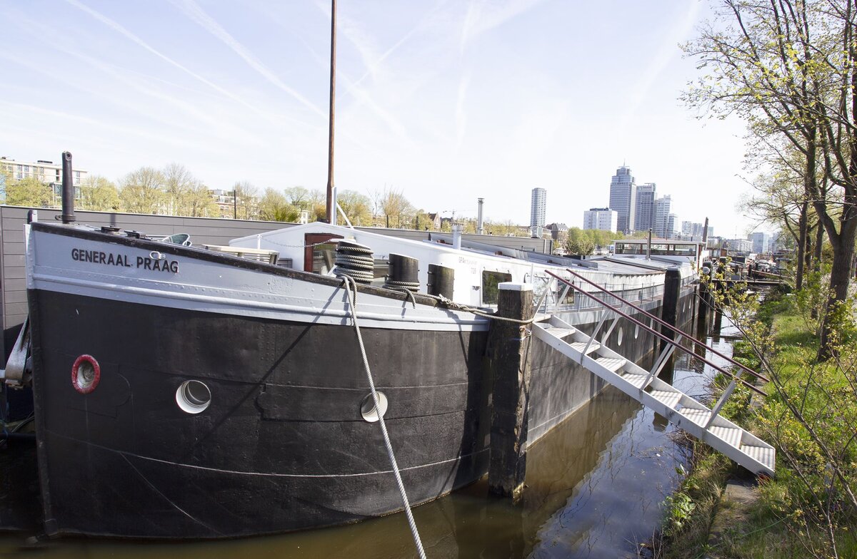 Я никогда не была внутри плавучих домов в Амстердаме. А ведь любопытно глянуть- как там у них все устроено. Таких домов в Амстердаме насчитывается более 2500, но знакомых, живущих в этих домах у меня нет, а просто так попроситься на чашечку кофе, воспитание не позволяет. Наконец-то на сайте по продаже недвижимости выставили на продажу такой дом и мы можем посмотреть комфортно ли в нем живется. "Генерал Прага" был построен в 1926 году. Сначала он перевозил грузы из Нидерландов в Бельгию, во время Второй мировой войны служил госпиталем для раненных, в 80-е годы прибыл в Амстердам и кинул якорь на реке Амстел. В 2013 году судно, длиной 50 метров, полностью отремонтировали и использовали как отель по типу "постель и завтрак". Но, видимо, два года без туристов сказались на финансах хозяина и он его решил продать. После ремонта корабль обзавелся роскошной отделкой потолка из красного кедра, теплыми полами из мрамора и орехового паркета. Плавучий дом площадью 260 м2 состоит из двух гост
