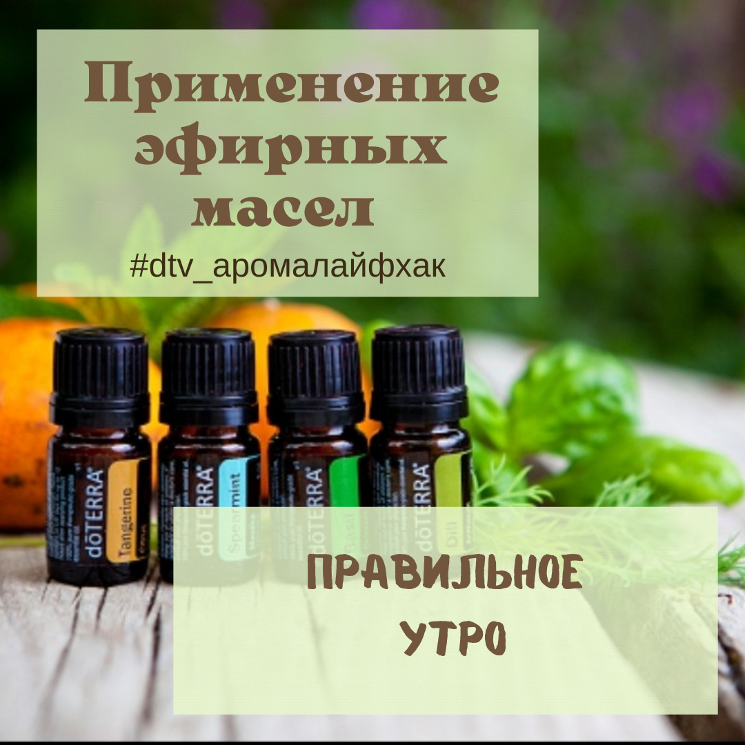 Как день встретишь, так его и проведёшь! Правильное утро - залог нашего хорошего дня! Делюсь секретами идеального арома утра в рубрике #dtv_аромалайфхак 🔅 Воспарить над житейскими проблемами и ощутить легкость помогут масла: -Бергамота -Грейпфрута -Лимона -Апельсина -Мелиссы Берем несколько капель💧любого из этих масел (или, по настроению, делаем смесь из них, добавив каждого по одной💧) в теплые ладошки, растираем их и проводим по всему телу, заряжаем его: стопы, ножки, бока, животик, грудь, руки, волосы. Все, теперь можно вставать. 🔅 Чтобы день был чистым и ярким, во время утренних процедур в ванной, в воду для полоскания рта добавим 1 💧 эфирного масла на выбор: -Чайное дерево -Сосна -Эвкалипт -Гвоздика 🔅 Улыбаемся своему отражению в зеркале, расчесывая волосы. Любуемся собой и легким движением наносим на волосы или расческу 2-3 💧 -Апельсина -Мандарина -Иланг-Иланга -Розы - Жасмина Аромат пробуждает в нас женственность. Расцветаем, ощущаем свою красоту и притягательно