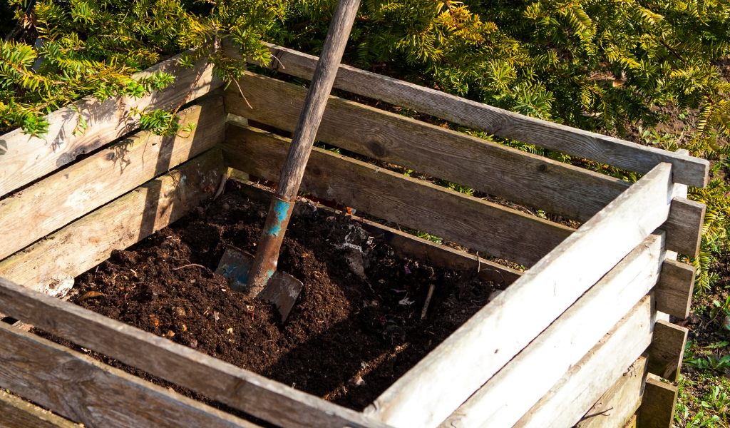 Компостную кучу можно накрыть навесом для защиты от прямых солнечных лучей.
