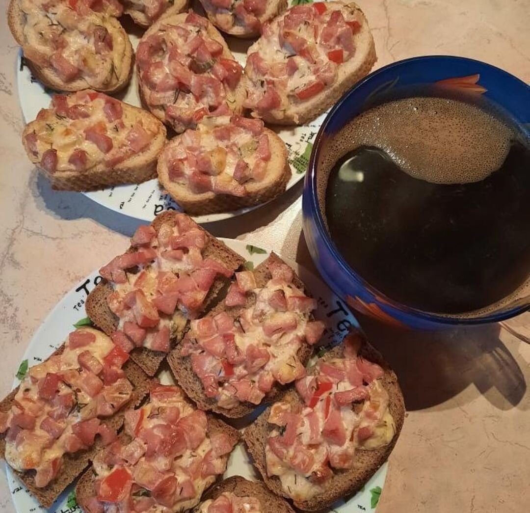 Это рецепт для любителей пиццы или если не умеешь готовить тесто. Нам понадобиться: Помидор сосиска сыр майонез хлеб Помидор и сосиску нарезать кубиком,добавить тертый сыр,майонез. Все смешать,выложить на хлеб и запечь в духовке 15 минут. Приятного кусь.Спасибо за дочитывание 💖