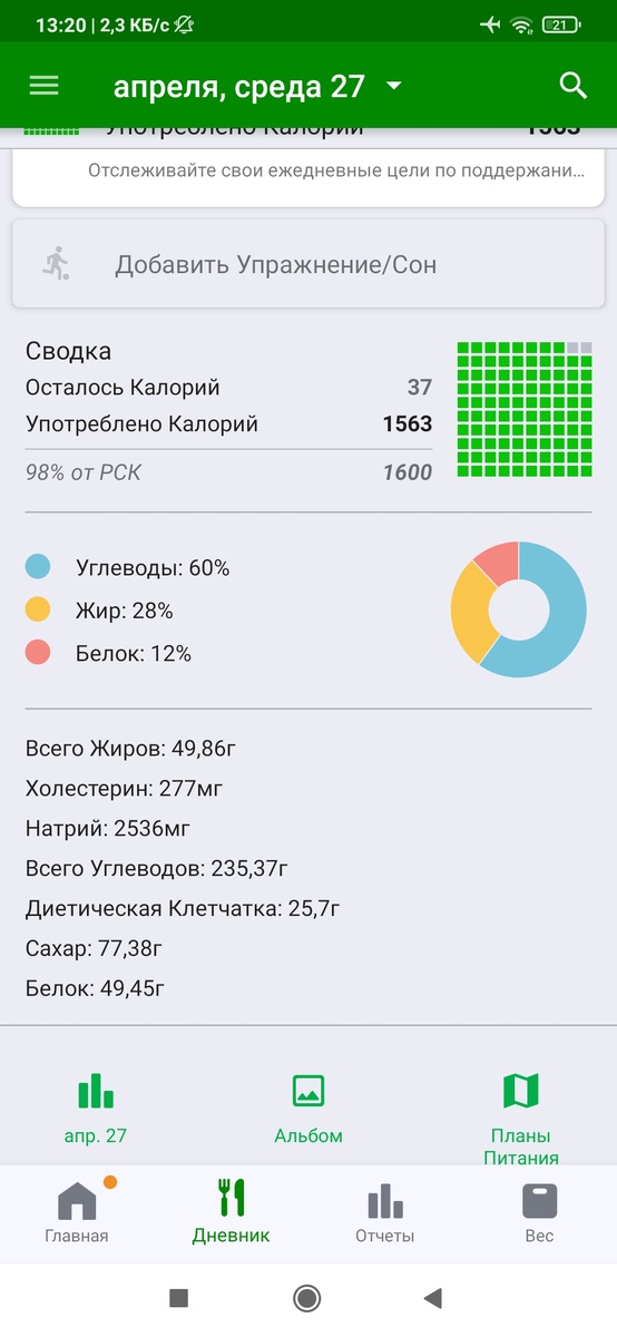 Калорий почти норма. Куда всё провалилось - не знаю. В нервы и почти бессонные ночи.