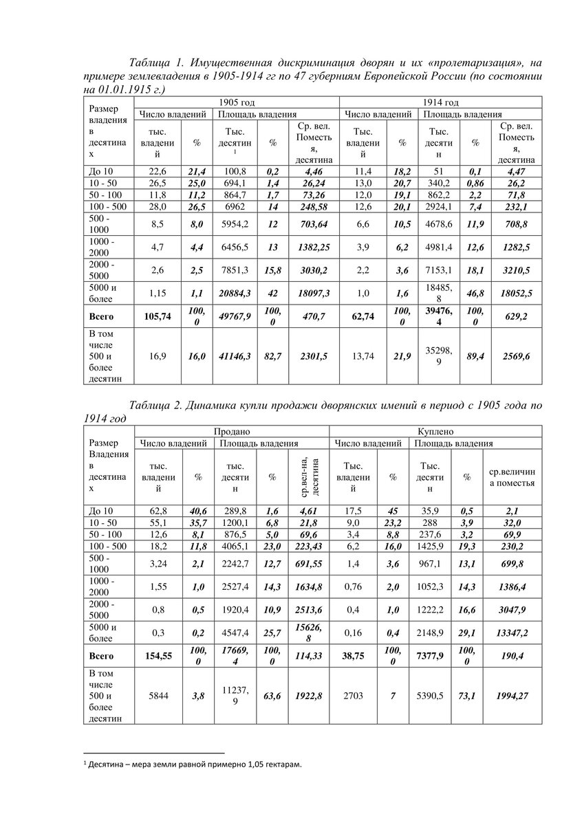 - Русское дворянство к 1917 году состояло почти на 85% беспоместных и мелкопоместных дворян, главным источником существования которых была государственная служба: гражданская и военная. После 1861 года число дворянских поместий стремительно сокращалось. Например в 45 Губерниях Европейской части России число дворянских поместий (хозяйств) сократилось с 87181 до 40676 хозяйств, или были проданы более 53% дворянских имений. (А. В. Островский. Русская деревня на историческом перепутье. стр. 305). Поместное дворянство терпело сильную имущественную дискриминацию. В 1914 году 11,4% землевладельцев-дворян с имениями более 1000 десятин, владели 77,6% поместных землевладений, а 1,6% крупнейшие латифундисты распоряжались 46,8% поместных земель. И наоборот 60% мелкопоместных дворян с имениями менее 100 десятин владели 3,16% поместных земель. (см. таблицу в приложении). За нищими дворянами Государственная служба была единственной привилегией и источником средств к существованию. В гражданской войне Дубровские не поддержали Троекуровых. Их интересы давно не совпадали интересами богатой верхушки русского дворянства, которая паразитировала на экспорте зерна, продовольствия, леса и на военном бюджете. Февральская революция отменило Империю и лишила русское дворянство их привилегии служить Царю и Отечеству. Объявили демократию, свободу и равенства, следовательно далее не могло быт речи о монополии дворянства на государственной службе. Одновременно дворянство было единственным военным и государственно-бюрократическим сословием, которое состояло из образованнейших людей своего времени, обладающих науками и иностранными языками. Большевики, как великие прагматики очень быстро учились и поняли, что им без государства никуда. Они встали на путь создания Государства имперского типа, назвав его Пролетарским. Вот здесь сошлись интересы русского дворянства и большевиков. Большевики им обещали государству и Отечеству, только без гражданских чинов и дворянских титулов. И золотыми погонами тоже пришлось пожертвовать. Зато они по итогам победы над интервентами и белогвардейцами, получили в свое распоряжение ГОСУДАРСТВО, без банкиров, капиталистов, помещиков и военно-феодальной аристократии, которым служили до революции. Это они создали РККА, потом воспитали и обучили того поколения полководцев и командиров РККА, которые штурмовали Берлин в 1945 году. Еще некоторые факты. В 1920 году Наркомат Финансов состоял на 97% из бывших чиновников Министерства Финансов РИ. Это они разработали и провели блестящую многоступенчатую денежную реформу под задач НЭП в 1921-24 гг, затем в 1930-32 годах двухконтурную советскую денежно-кредитную систему под задач индустриализации и коллективизации. Центральный Статистический Комитет МВД РИ стал ЦСУ НКВД РСФСР (затем СССР). Царские статистики подготовили справку для Наркома Иностранных Дел Г. В. Чичерину об ущербе России от интервентов, чего предъявил Нарком в ответ на домогательства Антанты на оплату царских долгов в 1922 году на Генуэзской конференции