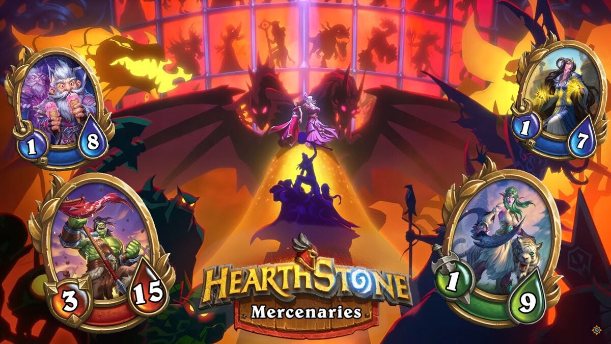 Наемники — последний новый режим Hearthstone с необычными механиками и персонажами. После нескольких обновлений в Наемниках набралось уже 78 героев — каждый с 3 способностями и 3 элементами снаряжения, которые открываются по ходу прокачки персонажа и накопления Монет наемников. Роли наемников Защитники Защитники обозначены красным. Это ваши танки и персонажи поддержки. Обычно у них высокое здоровье, и они применяют эффекты провокации и усиления, чтобы контролировать поле боя. Многие из них хороши в ближнем бою и медлительны по сравнению с персонажами других ролей. Заклинатели Заклинатели отмечены синим цветом. Эти наемники применяют мощные заклинания (иногда усиливающие ваш отряд, иногда делающие что-то плохое с противником), но, как правило, у них слабая сила атаки и они уязвимы. Бойцы У бойцов зеленые рамки портретов. Они применяют агрессивные способности, которые наносят высокий урон противникам. Вы можете добавить в отряд любую комбинацию наемников, но если в
