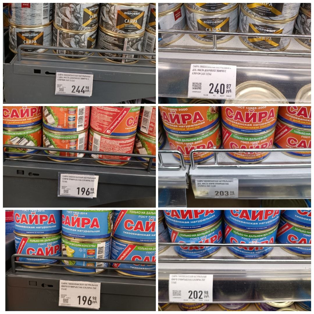 🏪 Состояние цен на консервы «сайры тихоокеанской натуральной» компании ГК «Доброфлот» отслеживается в магазине "Реми Сити" во Владивостоке. По состоянию на 30.04.2022г. цены на консервы следующие: ⬇️ "сайра тихоокеанская натуральная с добавлением масла (сделано морем)" – 240 руб., -1,6% от цены от 09.04.2022 (244 руб); ⬆️ "сайра тихоокеанская натуральная с добавлением масла" – 203 руб., +3,6% к цене от 09.04.2022 (196 руб); ⬆️ "сайра тихоокеанская натуральная" – 202 руб., +3,1% к цене от 09.04.2022 (196 руб). Телеграм канал Трепанг ДВ