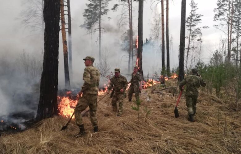В Курганской области военнослужащие калиновского соединения по охране важных государственных объектов и специальных грузов Уральского округа войск национальной гвардии защитили охраняемый объект от подбирающегося природного пожара. Своевременными, умелыми и решительными действиями росгвардейцы не позволили пламени пройти через искусственно созданные рвы и не допустили распространения огня в непосредственной близости от важного государственного объекта. Накануне из-за природных пожаров в регионе введен режим ЧС, зафиксированы возгорания в нескольких районах Курганской области.