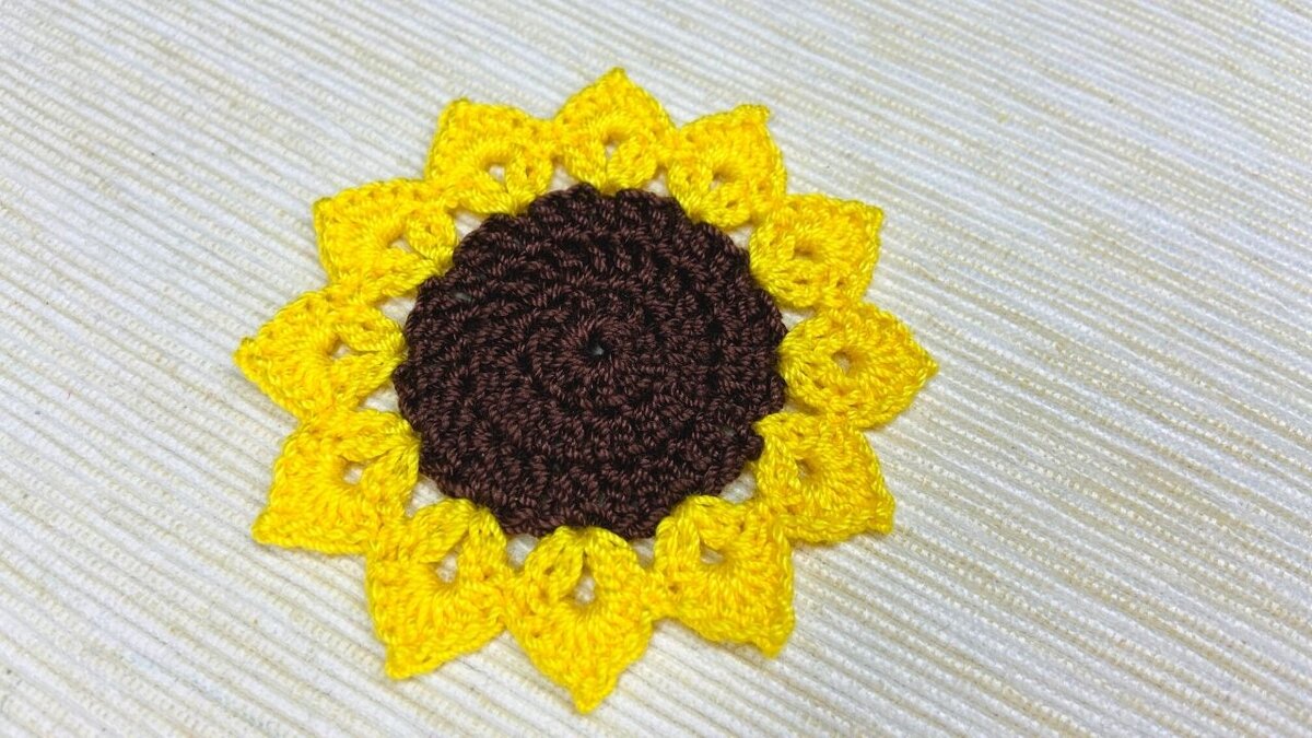 Вязаный крючком подсолнух. Мастер-класс с пошаговыми фотографиями.