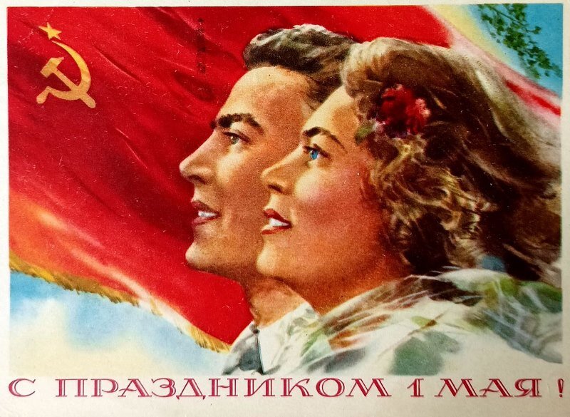 На первомайских открытках недавнего прошлого простые человеческие радости – семья, дети, свободный труд, дружба, весна, цветы и яркие краски…