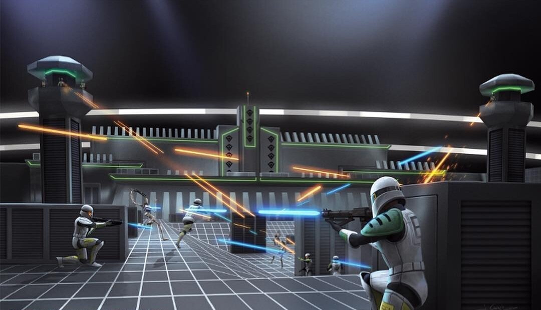 В сериале Войны Клонов и Бракованная Партия мы уже могли наблюдать подобную тренировку. Дроиды, как и показано, могли появится из скрытых мест в полу или стенах, турели разных калибров, стреляющих не только тренировочными зарядами, но и боевыми - всё что угодно исходя из настроек сессии тренажёра или пожеланий инструктора. Всё это было необходимо для того, чтобы выковать из клонов первоклассных солдат. Ведь, как ещё можно было эффективно тренировать клонов, если о них никто не должен был знать?
