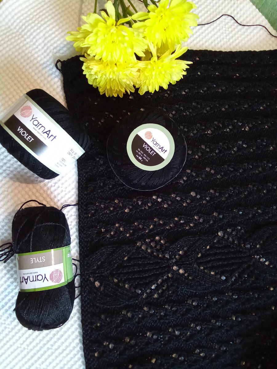 Рубрика: "Обзор пряжи". Вернёмся к маленькому черному платью. Как и обещала сегодня увидим обзор пряжи для моего будущего платья. В предыдущем посте я сказала что это два разных артикула. 1. YarnArt style - 185 метров в 50 граммах ( 67% хлопок, 33% вискоза) Ниточка имеет очень приятный блеск, так как в составе есть вискоза. 2. YarnArt VIOLET -282 метра в 50 граммах (100% хлопок) Тоже есть блеск, так как это мерсеризированный хлопок. Полотно получается немного утяжеленным, но это как раз мне и нужно. "Violet" стабилизирует полотно. А "Style" в одну ниточку нестабильно и косит. Вяжу не по кругу, а отдельно перед и спинку. Потому что я люблю сшивные изделия.