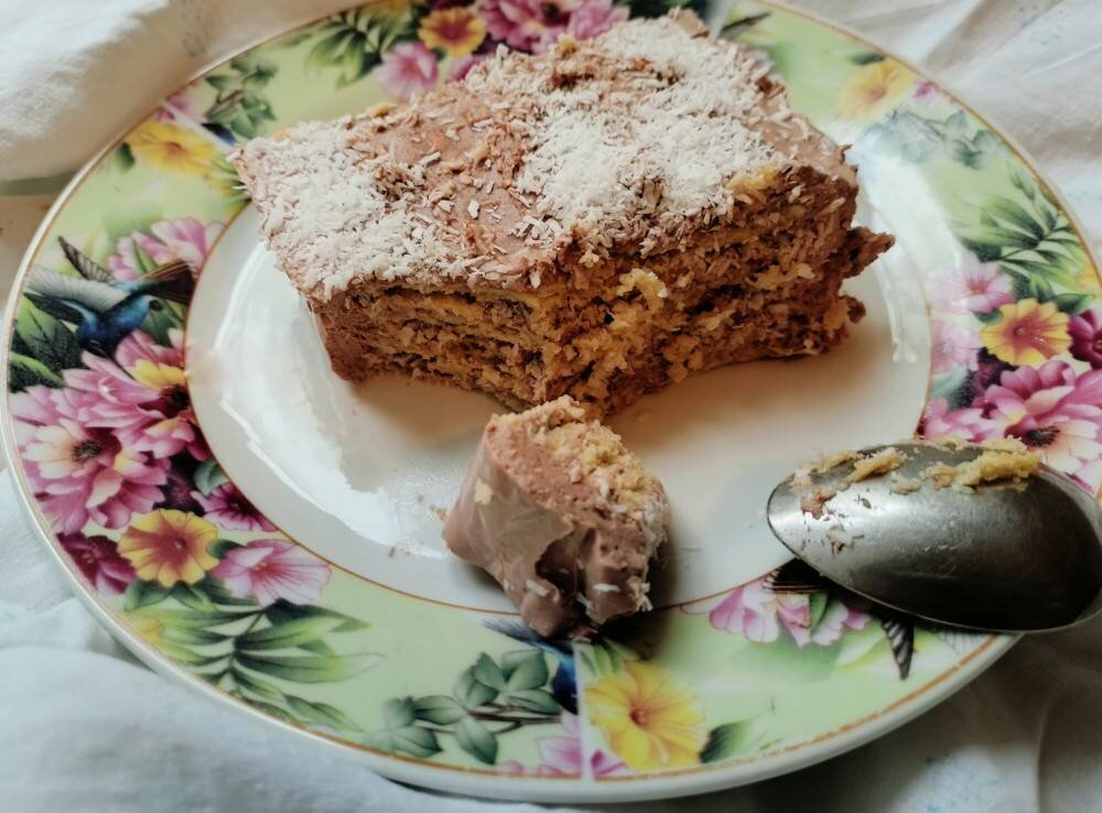 Очень вкусный, в меру сладкий, сливочно-шоколадный торт! Оценят как малыши, так и взрослые.. Готовится быстро, съедается ещё быстрее! 😋 #ппторт #торт #быстро #вкусно #пп #зож #рекомендую Ингредиенты: Печенье юбилейное традиционное - , Творог мягкий 5% , Какао несладкий , Ванилин , Кокосовая стружка , Желатин , Вода для желатина , Подсластитель Способ приготовления: Желатин предварительно замочить в воде или в молоке. Берём творог, кладём его в миску. Добавляем к нему ванилин, какао и подсластитель. Всё перемешиваем. Форму застелить пищевой плёнкой. В размешанный крем добавляем нагретый желатин и быстро перемешиваем. Смазываем низ кремом, выкладываем печенье, сверху смазываем опять кремом и посыпаем кокосовой стружкой. Продолжаем до того момента, пока всё не закончится. В конце сверху сыпем кокосовую стружку и убираем в холодильник на 20 минут. Я убирала на ночь. Приятного аппетита 🤗.