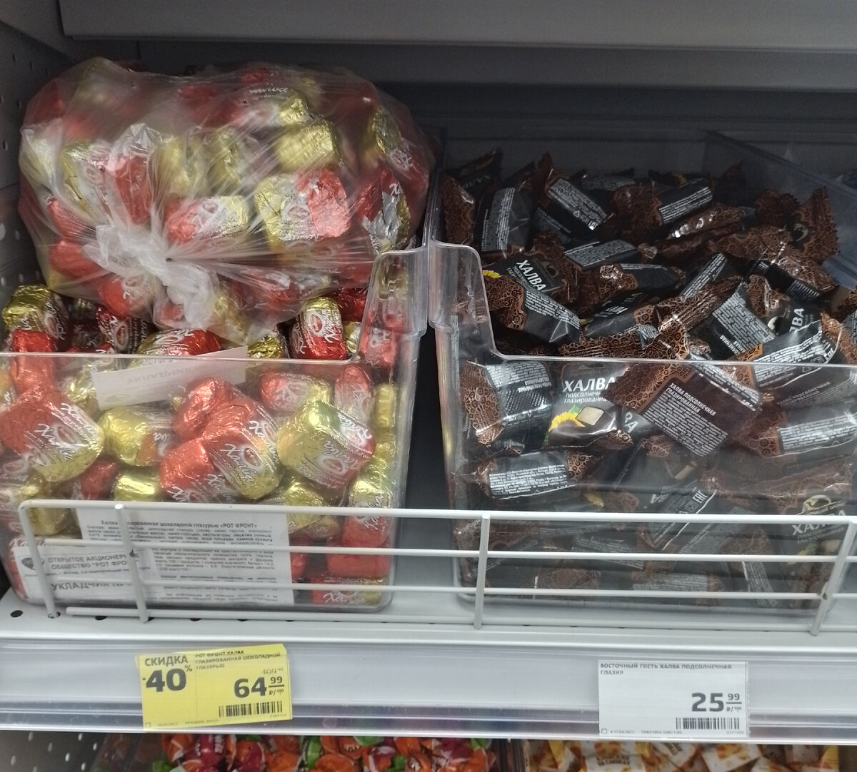 Халва, глазированная шоколадной глазурью "РотФронт" - 1100 рублей за кг (по акции - 650 рублей)
