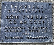 Из Википедии: Дом учёных Новосибирского Академгородка — учреждение СО РАН для культурно-просветительской, общественно-политической, театрально-концертной, спортивно-оздоровительной, выставочной работы, а также библиотечного обслуживания; одно из самых значительных общественных зданий Академгородка — памятник архитектуры регионального значения. Адрес — Новосибирск-90 (Академгородок), Морской проспект, 23. Создан по распоряжению Совета министров РСФСР № 5307 от 22.11.1962 года «Об организации Дома учёных в Новосибирском научном центре». Проект здания разработан группой ленинградских архитекторов в составе И. Орлов (руководитель мастерской), Л. Лавров, М. Левин, Н. Васильева, А. Ротинова, Г. Сафроновой, Ю. Юшакова. Архитектурно-планировочное решение Новосибирского Академгородка, выполненное этой группой, было удостоено Государственной премии РСФСР в области архитектуры за 1967 год. Дом учёных открылся весной 1966 года. Первым директором Дома учёных был Владимир Иванович Немировский,