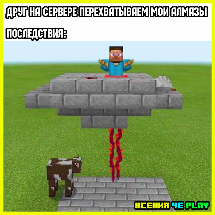 И вот настал четверг- самое время выложить новую подборку мемов! Надеюсь вам понравится ибо я очень старался выискивая по всему интернету действительно годные мемы. 1) Не всегда игроки занимаются созданием построек в креативе, но на то он и креатив, чтобы делать в нём то, что захочешь. 2) За такое и правда можно пустить на фарш! Вы стараетесь, а кто-то подходит и забирает себе все ваши труды. 3) Вот ещё один яркий пример, того как развлекаются игроки в креативе. 4) Это и правда важнее всего, когда вы играете на сервере и вдруг встретили другого игрока (если вы конечно не грифер). Ну, а на этом всё! Если эта подборка оказалась вам по душе, то думаю вам не составит труда отблагодарить её автора лайком) 1 часть