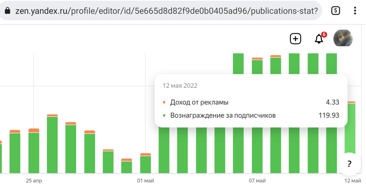 Я с удовольствием вам расскажу о заработке за неделю моего единственного канала на платформе Яндекс Дзен. Никаких иллюзий здесь не будет, только реальность, только правдивые цифры без преувеличений. Веду канал я уже больше двух лет. Результаты были всякие, но я не сдавалась. Вернее были мысли забросить и уйти, но я их отбросила. Вообщем, ребята не буду много лить воды, а сразу перейду к главному. Доход за неделю. На баланс зачисляется то 30 рублей, то 220 рублей. Разрывы не короткие. Поэтому за неделю могу получить 250 рублей, а могу и 1200 рублей. Хотя и регулярно стала выставлять материал. Давайте, смотря на скриншоты посчитаем, сколько же мне удалось заработать с 6 мая по 12 мая этого года. Я сложила числа за 7 дней и получилось 1405,06 рублей. А за месяц примерно выйдет 3000 рублей. То есть, нет такого, что каждую неделю я получаю одинаково. На прошлой неделе мне платили каждый день по 30 по 60 рублей. Сегодня мне пришло в два раза меньше чем вчера. Заработок снова начинает падать