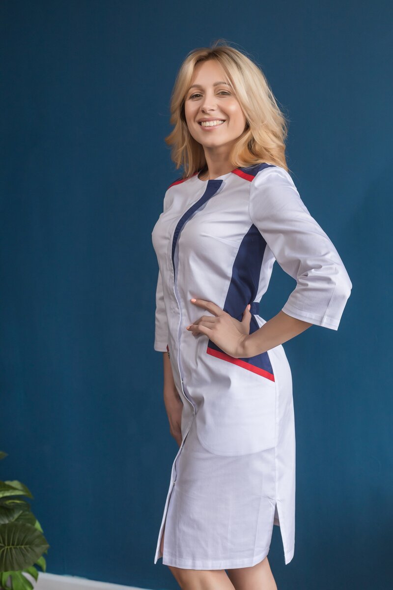 За последние десятилетия медицинская одежда претерпела множество различных изменений. В современном мире она не только отвечает требованиям к комфорту и защите, но также соответствует модным тенденциям. Эстетическая привлекательность является обязательной составляющей медицинской спецодежды. Это касается как медицинских халатов, так костюмов со всеми их дополнительными элементами. Предпочтительным цветом для одежды всё ещё остаётся белый, но помимо него могут быть использованы самые разнообразные оттенки. Распространение получила ткань бледно-розового, персикового, бирюзового и голубого цветов. Широкий ассортимент изделий позволяет выбрать подходящий вариант для каждого медицинского работника. Основные моменты Одним из модных трендов является использование принтов и вышивок. С их помощью любое изделие можно сделать более оригинальным и интересным. Конечно же, в этом случае нередко используются изображения, так или иначе связанные с врачебной символикой. Женские халаты нередко оснащены